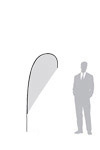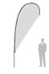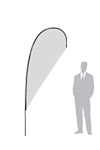 Les drapeaux en forme de goutte sont de différentes dimensions. Les drapeaux se tiennent tendues tout seules par une hampe télescopique.