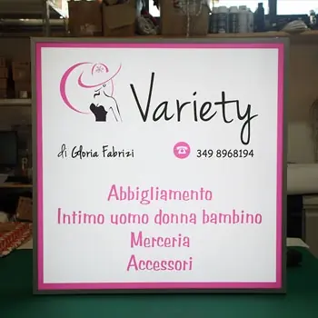 L'enseigne est faite avec cadre en acier, boîte en aluminium, système d'éclairage à LED. L'impression est réalisée sur le panneau avant en plexiglas opale 3 mm pour être visible de jour comme de nuit.